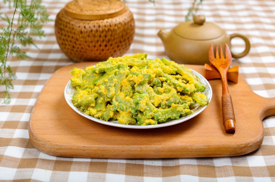 而大顶苦瓜的魅力不局限于此,榨汁、滚汤、炖排骨、浸海鲜、做成甜糕等,做法多元且具特色。我个人还蛮喜欢用咸蛋黄炒制成的金沙苦瓜,咸脆的外皮下是柔嫩的苦瓜内芯,颇为惊艳。