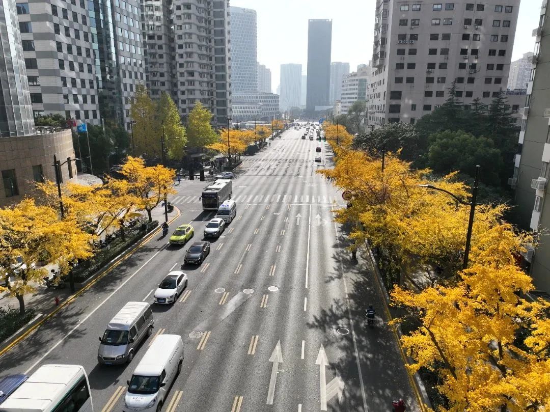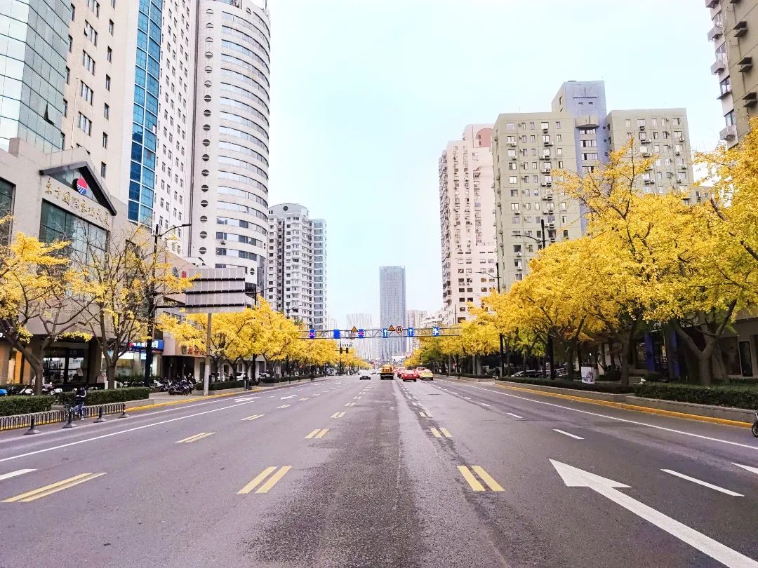 四平路(海伦路-大连路)全长约2285米,沿着四平路一路前行,便可欣赏到这条申城有名的银杏景观道,它也已成为虹口一道靓丽的风景线。