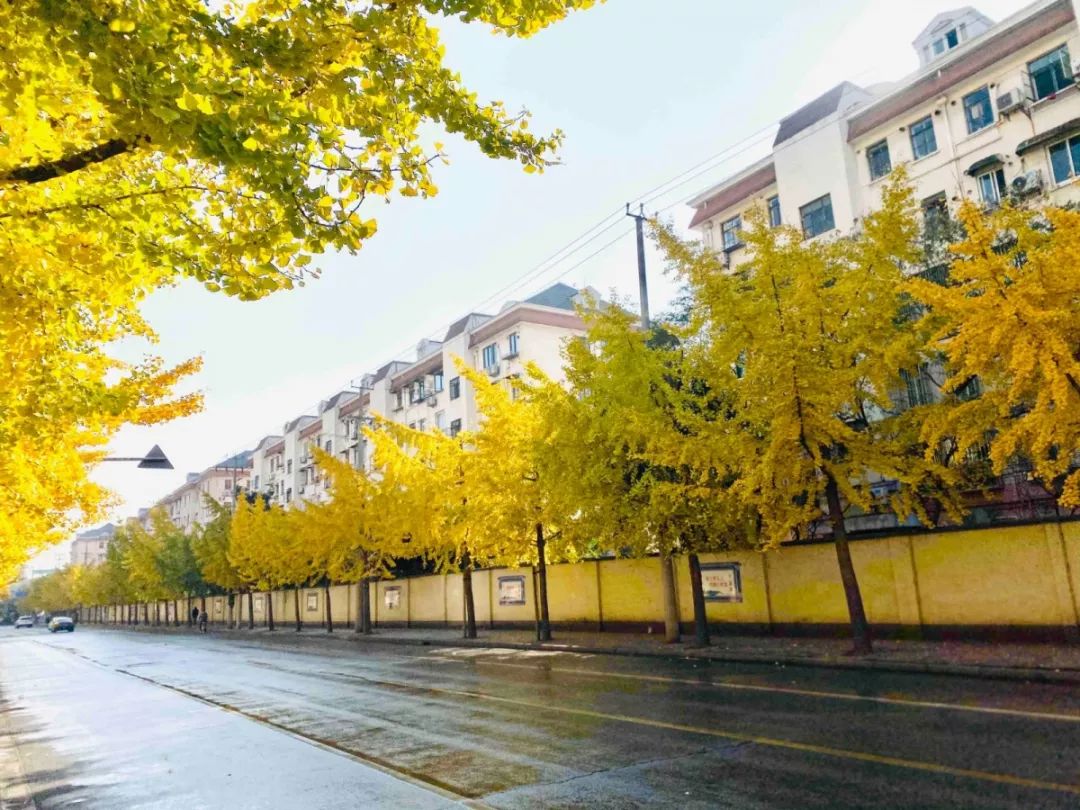 安汾路的银杏美景隐藏在僻静的居民区边,南泗塘河—逸仙路段种植了约260株银杏树。这里没有都市的喧嚣,留给市民的只有纯粹的银杏景观。