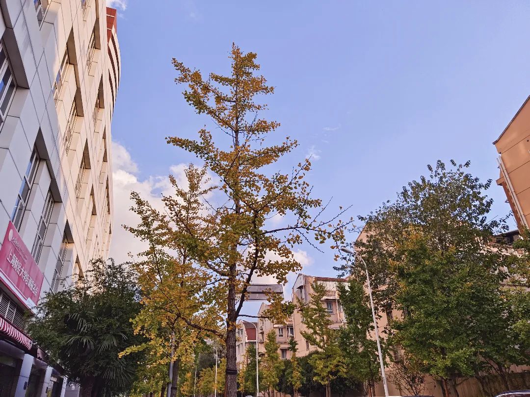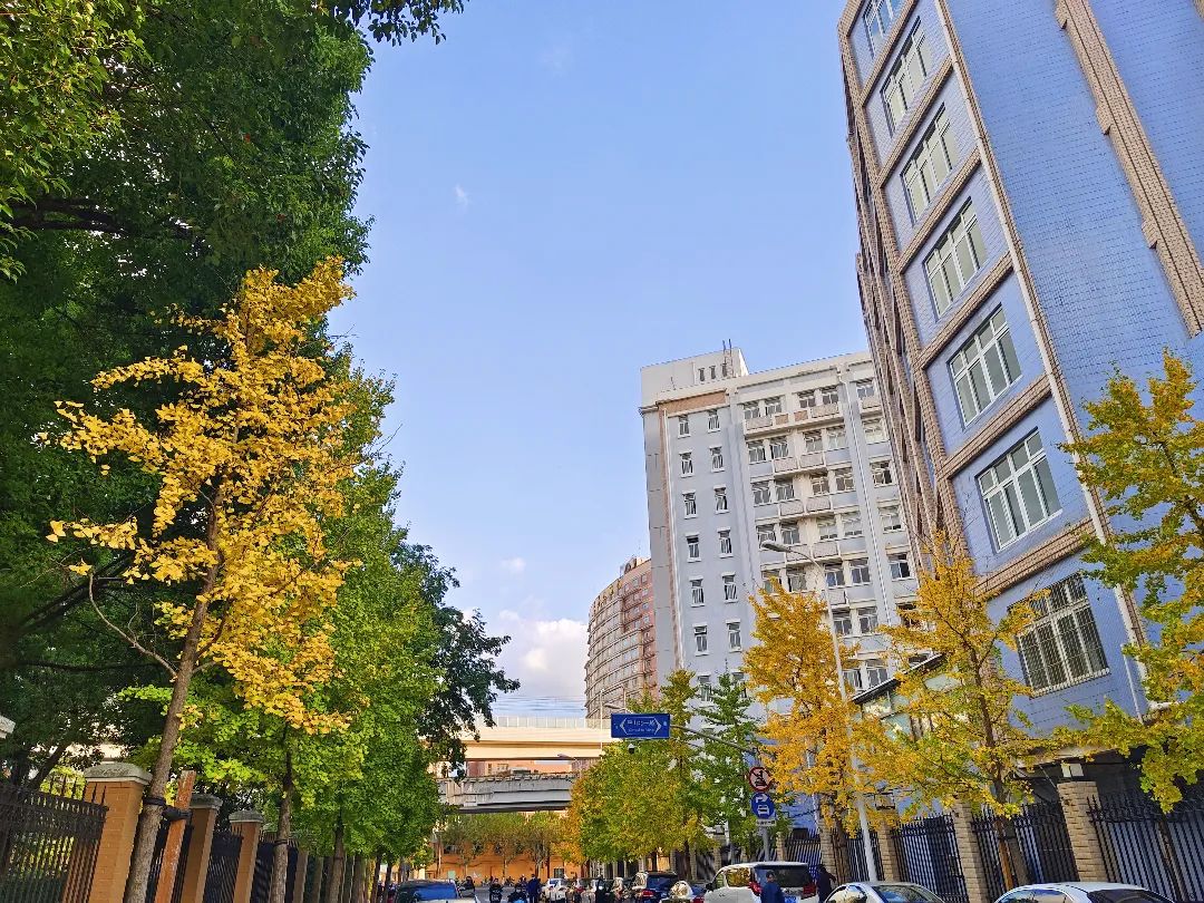 广秀路(中山北一路—广灵一路)全长约300多米。举起相机,以天空为背景来上一张美照,让金黄+蔚蓝制霸你的朋友圈。