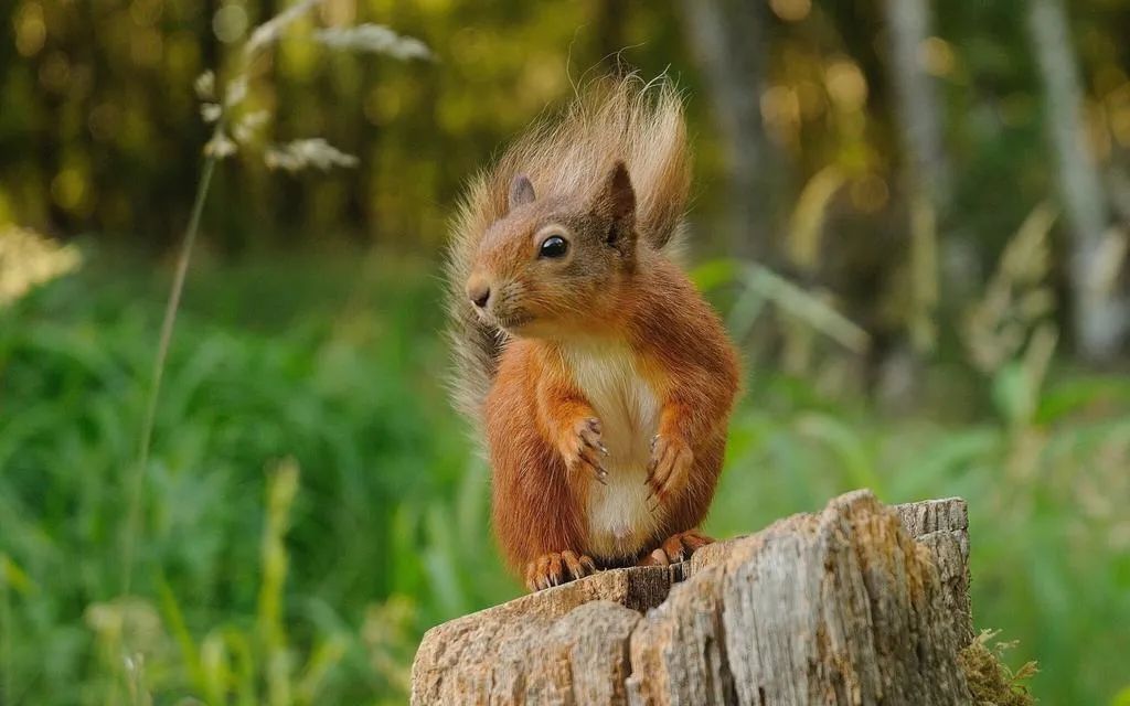 松鼠的滑翔本领确实是绝活,它甩开大尾巴,相距几米远,一纵身就腾空跳上了树冠,上下翻腾,它四肢灵活,行动敏捷。摘一颗葡萄,坐在树杈处,翘起毛茸茸尾巴,双爪抱着葡萄啃吃,特别逗人喜欢。