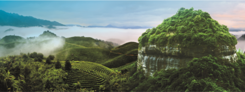 好山有好水,好水生好物。位于罗宵山脉末端的湘东区东桥镇,丹霞实景奇异、草水蜿蜒而过,红岩绿水,美不胜收。连绵起伏的群山间,漫山遍野生长着细细长长的野生藤茶。近百年来,东桥本地人都有将野生藤茶炒制成青霜古藤茶,用来待客赠友,或远寄他乡游子的习俗。