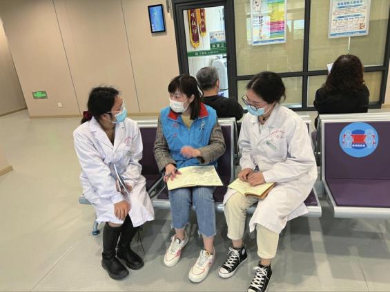 陈清蓉与医护人员进行业务上交流。