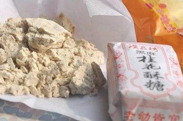 桂花酥糖是安徽合肥的一道传统名点,是以面粉、蜂蜜、白糖和桂花等主要原料制作的,既可以直接食用,也可以用沸水冲饮,味道十分香甜可口,老少皆宜。