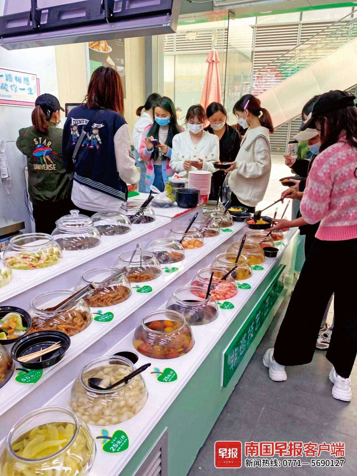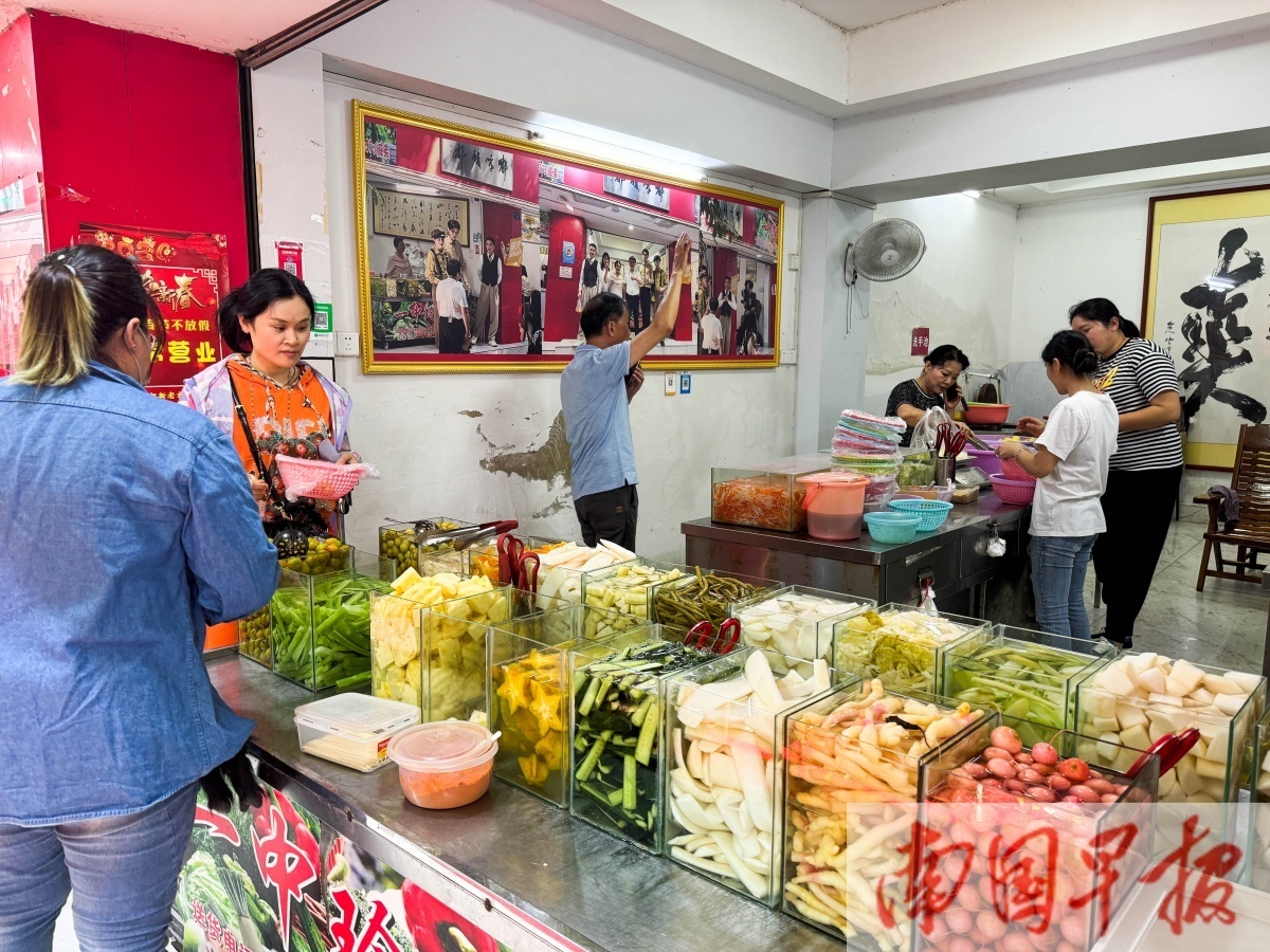 在南宁一家老字号酸嘢店,市民在选购酸嘢,店里墙上挂着网红及明星前来打卡的照片。记者 游拥军 摄