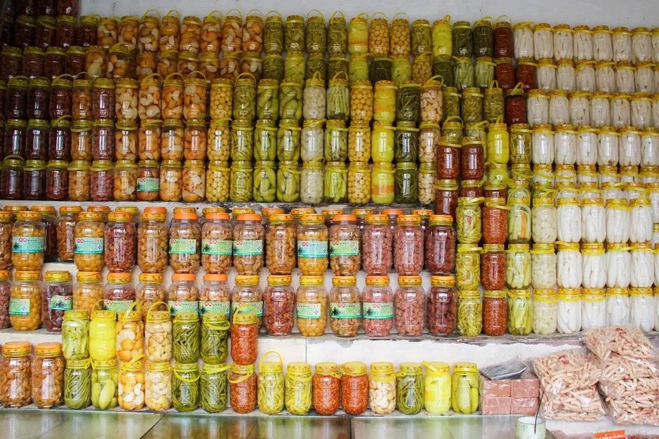 靖西酸嘢的口感也自成一派,酸中带甜,甜中带脆,吃的时候不用撒椒盐辣椒面等,直接入口,那又酸又甜又脆又嫩的滋味,实在是开胃爽口。特别推荐当地土特产山楂酸嘢,香脆可口,开胃消食;萝卜酸汁多入味,越吃越想吃。