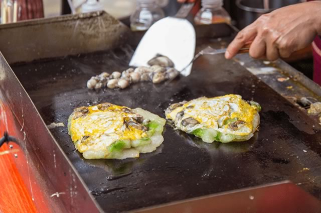 海蛎煎,闽南语为蚵仔煎,是闽南、台湾、潮汕等地区经典的传统名小吃之一,也是漳州人非常喜欢的海味小吃,为漳州八大名点之一。漳州的蚵仔煎制作方法与其它地区不同,味道也更独特,漳州的蚵仔煎用的是米浆,这样煎起来的蚵仔煎更酥脆,而其它地区用的是地瓜粉,蚵仔煎吃起来比较软湿。漳州蚵仔煎成品色泽金黄,表皮酥脆,里面柔软,配上萝卜酸、芫荽与蒜蓉酱,趁热咬一口,香嫩可口,油而不腻,可谓是色香味俱全的美食。 【 详细>>】