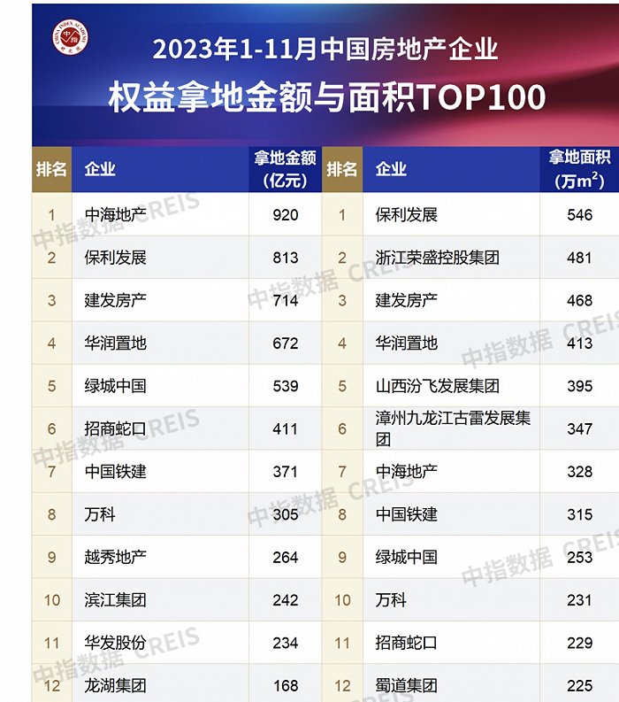 保利霸榜第一,万科拿地额继续下滑
