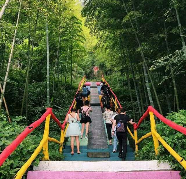 小编得到的最新消息,除开古寺,爬山之外,景区最近还专门增添了适合留恋打卡的网红点,由游客中心进入后的长长楼梯,被粉刷成了彩色楼梯,与山中的绿色植被互相映衬,使人仿佛感觉走在彩虹上一般,随便拍一张都能惊艳朋友圈;圣灯山老门外的围墙也不例外,也被刷成粉色了,天空晴朗时,彩色的围墙与蓝天白云又构成了一道美丽的风景。