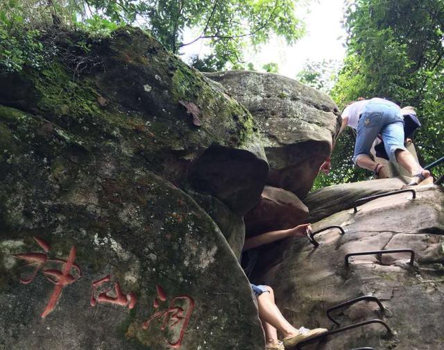 东山就完全是享受爬山的乐趣了,由于景区地势特殊,道路大多都是在绝壁和巨石上开凿出来的,沿途充满了刺激,对体能也有着很大的挑战,要保证爬山之前有着充沛的体力。沿途可以看到很多的树木涂鸦,景区内著名的蛇脱壳,两块巨石之间留有一小条缝隙,刚好能容一个人穿过;然后就是是狗钻洞,从上面钻进去,却是从神仙洞出来,经历这个过程后寓意你就成仙了,十分的有趣。