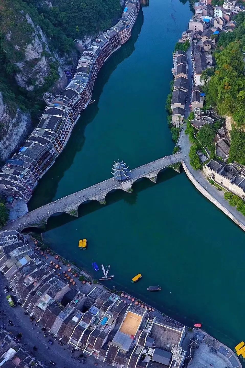 古镇内的舞阳河自西向东穿城而过,形成了“九山抱一水,一水分两城”的独特的太极图古城风貌,被誉为“东方威尼斯”。