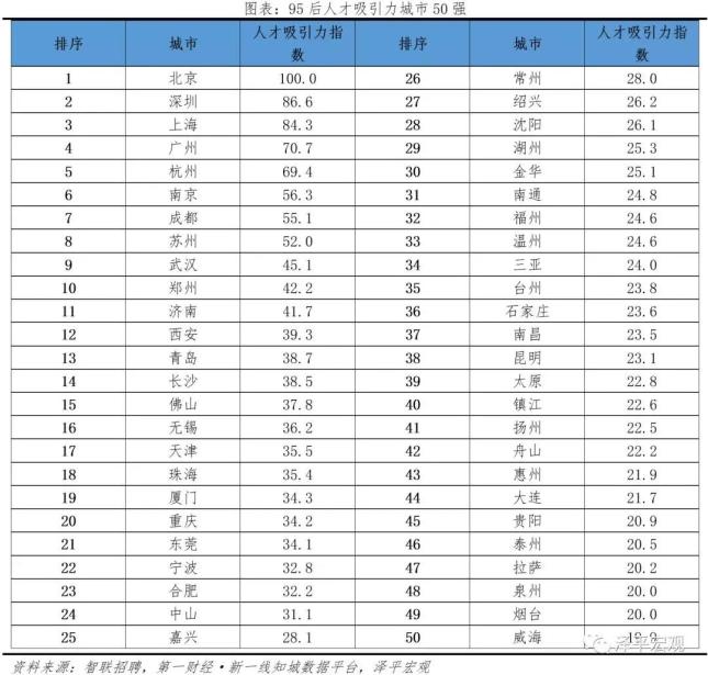 今天,智联招聘与任泽平又发布了一个报告《中国城市95后人才吸引力排名》。据此,我们来揭晓一下,95后最爱哪座城?