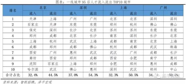 北京95后人才的最大来源地是天津,外流的最大去处是上海。