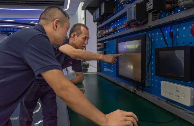 技术人员正在分析电气自动化实验平台PLC运行数据 黄雪波 摄