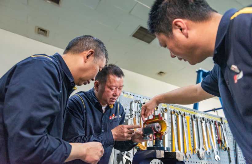 维修人员讨论疏水阀结构及工作原理 黄雪波摄