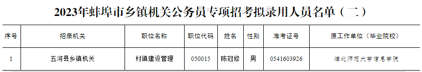 附件:2023年蚌埠市乡镇机关公务员专项招考拟录用人员名单(二)
