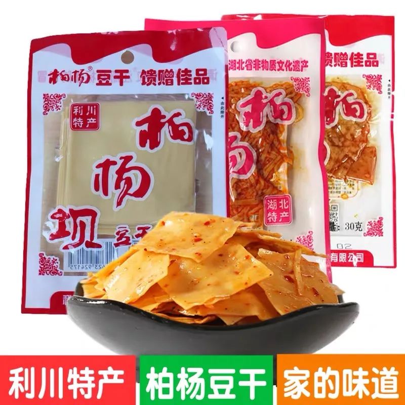 柏杨豆干以优质地产大豆、龙洞湾泉水和若干天然香料为原料,经过十几道独特工序加工而成。在整个制作过程中,不用石膏及其他任何化学品,色泽金黄,美味幽长,绵醇厚道,质地细腻,内含丰富蛋白质、多种维他命及钙、锌、钠、硒等多种微量元素,有“固体豆浆”之美称。相传,清康熙年间,当地官吏进京以柏杨豆干为贡品,被朝廷赐赏为“深山奇食”。