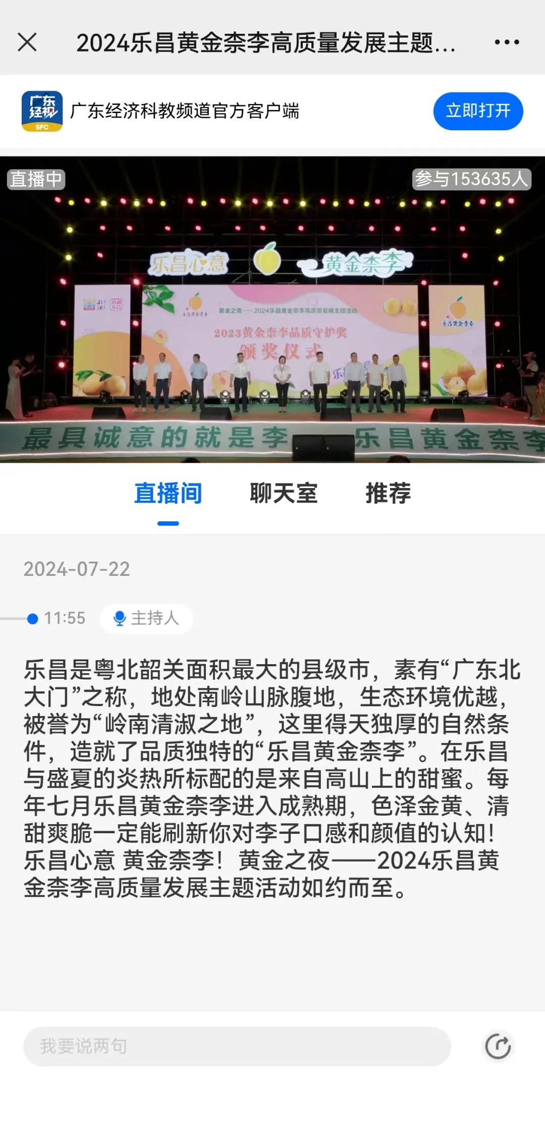 今年是全面推进乡村振兴和“百千万工程”高质量发展的攻坚之年,乐昌将以乡村产业振兴为重点,凝聚农业产业发展合力,加快建设粤港澳大湾区高品质“果篮子”基地,打造具有国内国际知名度和影响力的乐昌特色农产品品牌,继续做好乐昌“土特产”文章,促进农文旅产业融合发展,打造享誉中外的“乐昌黄金柰李”国际品牌名片。