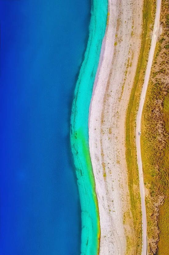在藏人心中,羊湖被看做是“神女散落的绿松石耳坠” ,湖水随光线变幻,演化成千变万化的蓝色。