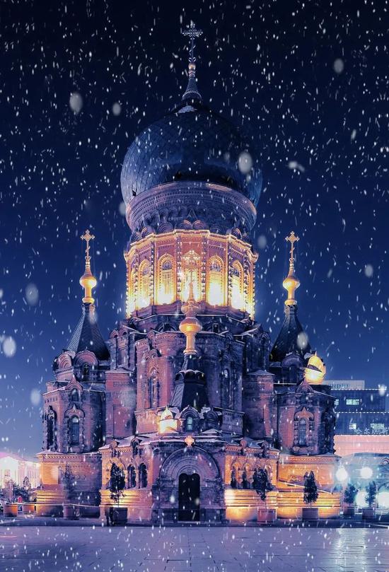 冬天最美的地方还数东北地区,来哈尔滨,看飘雪的圣索菲亚大教堂,看晶莹剔透、造型各异的冰雕。