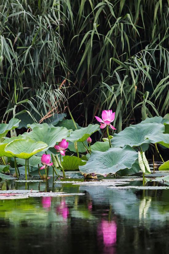 来这里看全国规模最大、荷花数量最多的荷园,荷花开放,红的、粉的、白的。。。铺满了整个池塘。