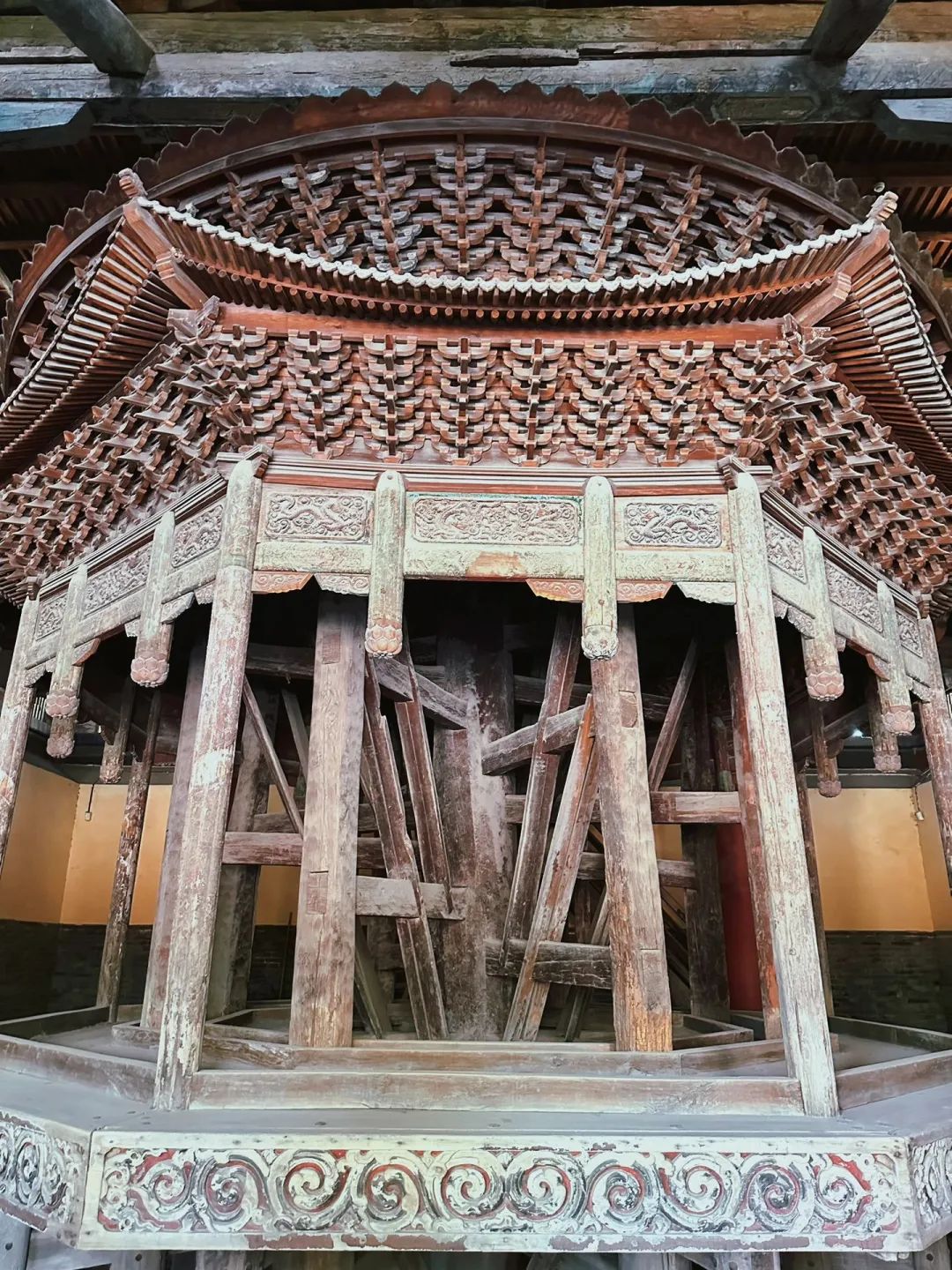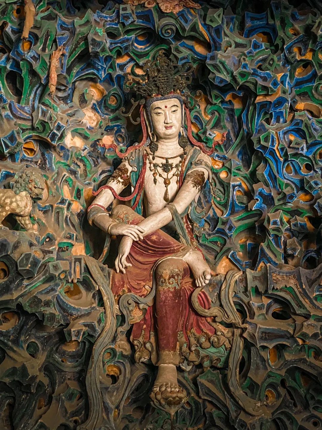 走进隆兴寺摩尼殿,无论多华丽的形容辞藻在这尊五彩倒坐观音面前,好像都显得苍白无力,只能安静的独自欣赏。