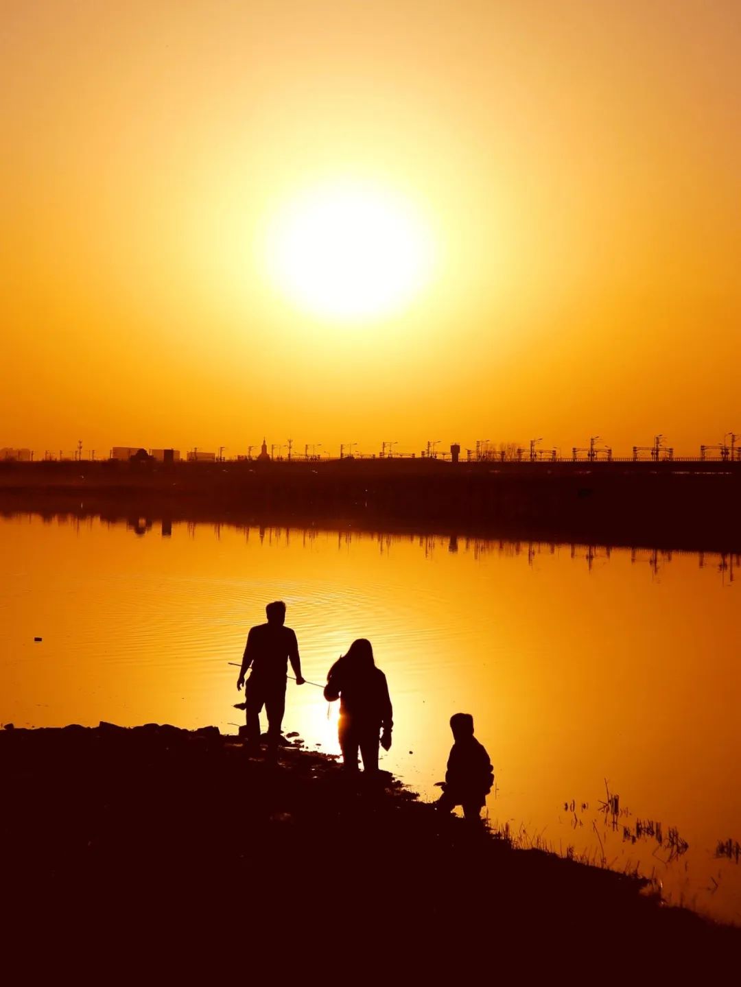 站在湖边钓鱼的人也成为了深色的剪影,仿佛置身于金色的童话之中。