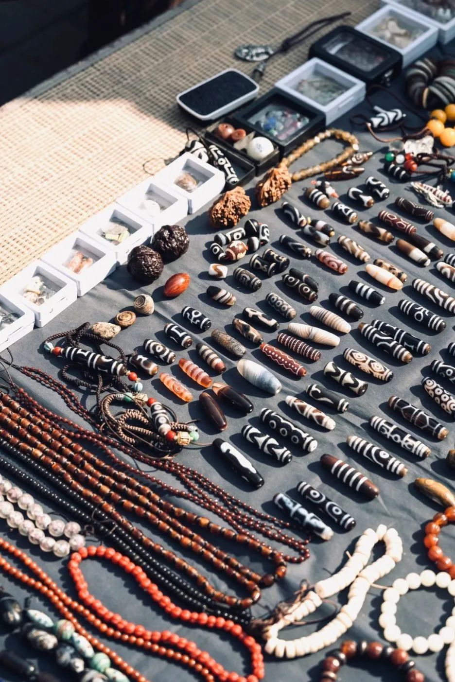 整个艺术市场的结构像是四合院一般,四周有二层的木质古楼包围,到处都摆满了各种摊位,丰富到让人眼花缭乱。