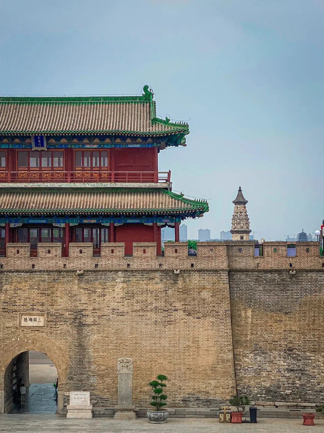 走进古城,塔身粗壮、形如楼阁的凌霄塔率先映入眼帘。