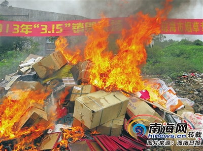 销毁假冒伪劣卷烟。 (本版图片均由海南烟草提供)