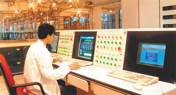 1996年,昆明卷烟厂技术中心建成全国第一条全自动集中配料生产线中央控制室。