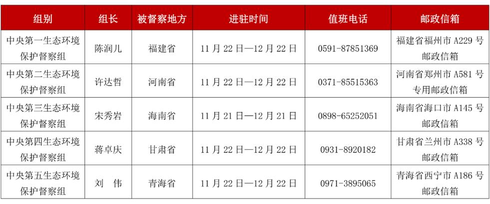 据“生态环境部”微信公众号,第三轮第一批5个中央生态环境保护督察组全部实现督察进驻。进驻期间,各督察组分别设立专门值班电话和邮政信箱,受理被督察地方生态环境保护方面的来信来电信访举报。