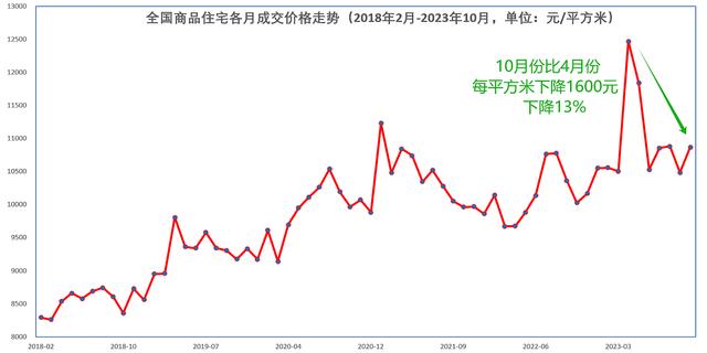 10月份,全国商品房住宅平均销售价格是10869元/平方米,这一价格比9月份(以下简称“环比”)微涨3.67%,但与今年4月份顶峰时12469元/平方米相比,每平方米下降1600元,下降13%。
