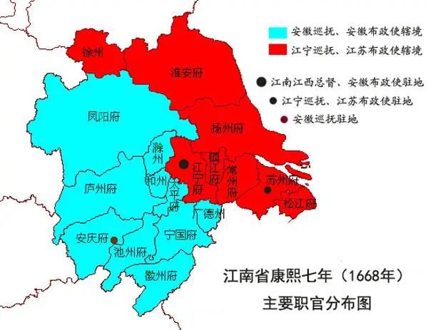 基业起自辽东的清朝,在其入关并平定江南后,显然并无必要将“南直隶”地域继续直接纳入中央政府管理之下,因此改明代南直隶为江南省,创建了一个人口数量、疆域大小、经济发展程度都在全国前列的巨无霸大省。在康熙年间,仅江南省的田赋之供,便占了全国的十分之三左右。