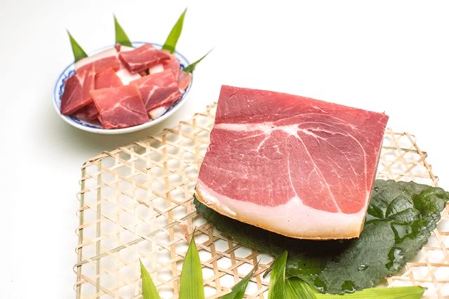 宣威火腿是云南省著名地方特产之一,因产于宣威而得名,与诺邓火腿、鹤庆的圆腿并称为云南三大火腿,与浙江金华火腿齐名媲美,蜚声中外,是云南著名的特产美食。宣威火腿创制于明代,历史悠久,其特点是形似琵琶,只大骨小,皮薄肉厚肥瘦适中;切开断面,香气浓郁,色泽鲜艳,瘦肉呈鲜红色或玫瑰色,肥肉呈乳白色,骨头略显桃红,似血气尚在滋润。其品质优良,足以代表云南火腿,故常称“云腿”,以鲜、酥、脆、嫩、香五大特色闻名于世。M AIgoo美食小编推荐云南著名的云腿还有诺邓火腿、撒坝火腿、鹤庆圆腿、丽江三川火腿等。 【 详细>>】