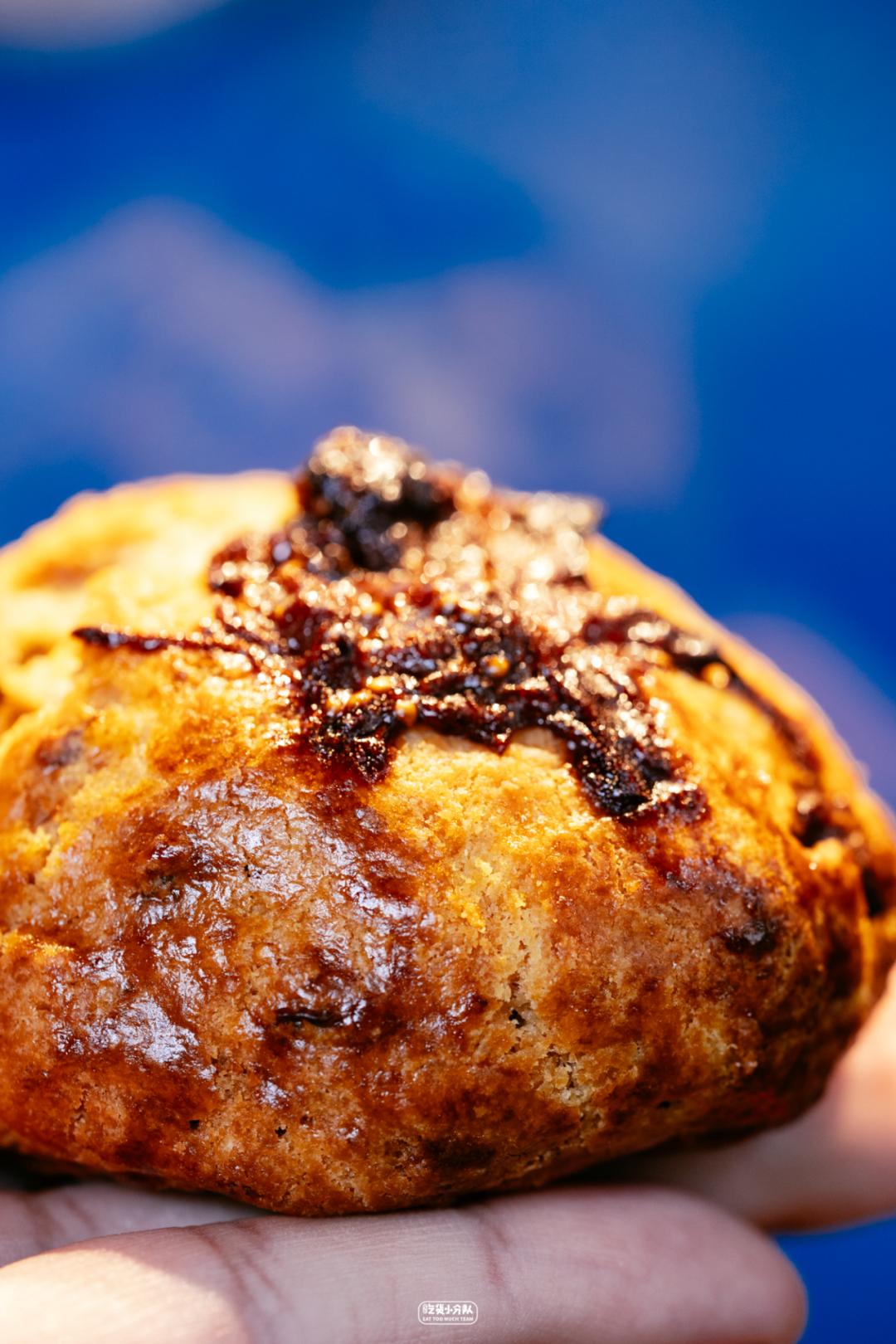 一家前身是辆移动糖果车的多巴胺小众面包店,显眼的红色主题贯穿全店。装修、产品、设计都是老板亲历亲为,墙上的装饰、店内的周边,随处可见老板小巧思。买了最近人气最高的「无花果司康」,刚刚出炉还热乎,外脆内软,口感不粉不干,黄油和核桃的香气萦绕唇齿间,算是一款可以闭眼入的理想中的优秀司康。