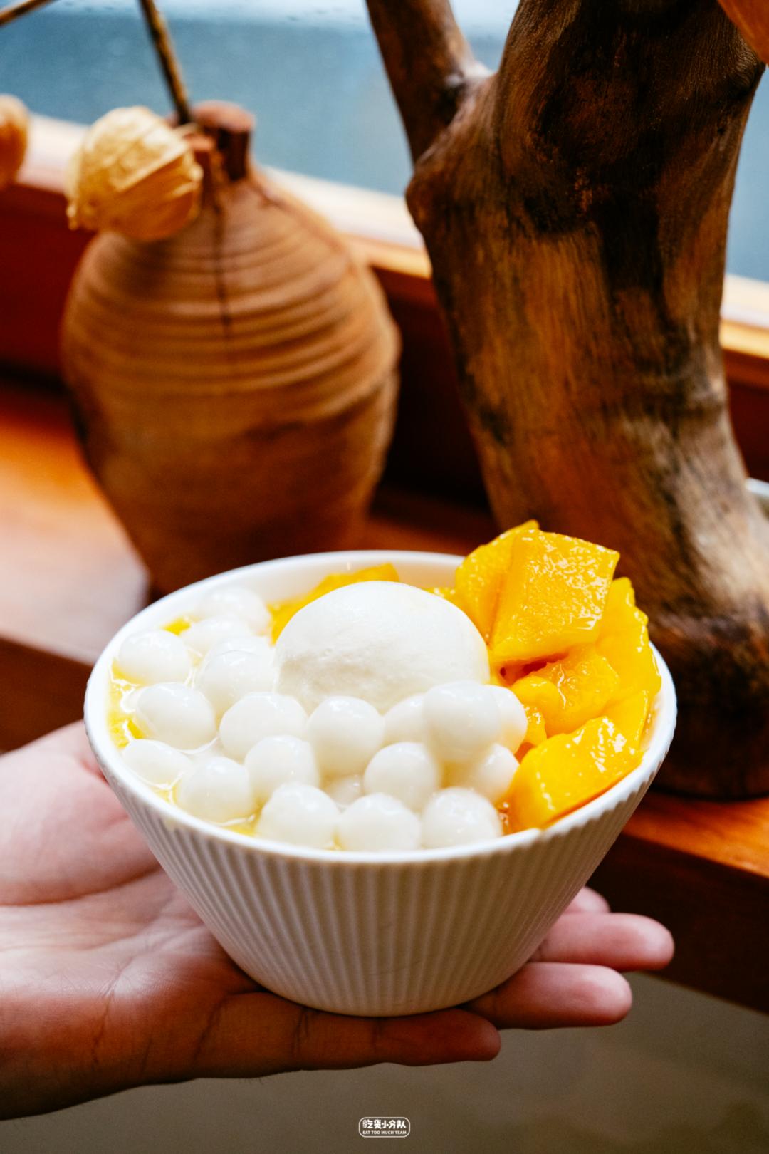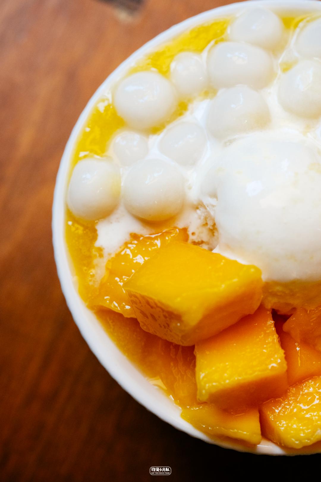 每天开到深夜24点的港式糖水铺,如今上海已经有3家门店。老店开在延庆路上,生意很好,甚至有时候还能看见开着豪车专门来吃的食客。芒果系甜品是点单率最高的,点了顺位第1的「多芒小丸子」,芒果现切现打用料新鲜,分量够够的,小丸子也是煮得软软糯糯,一边吃,一边看着店里循环的蜡笔小新,相当chill~