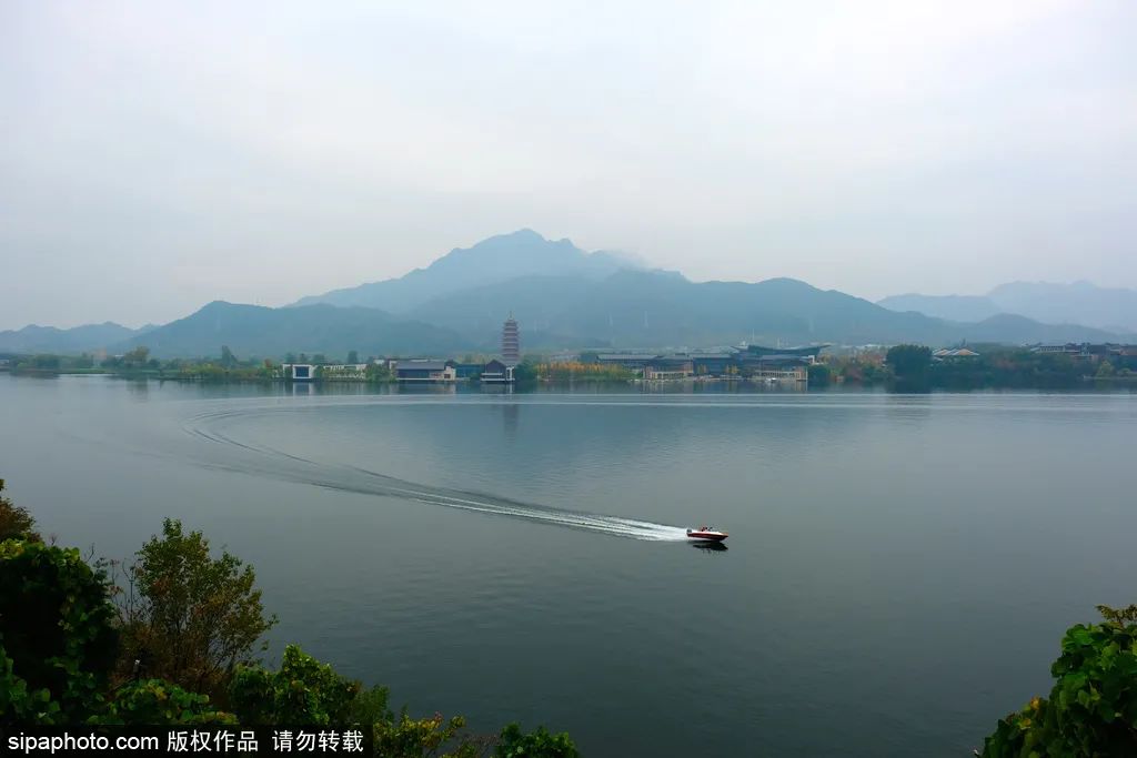 伴着讲解,游船载游客穿梭于雁栖湖的湖光山色中,感受人在画中游的美妙。
