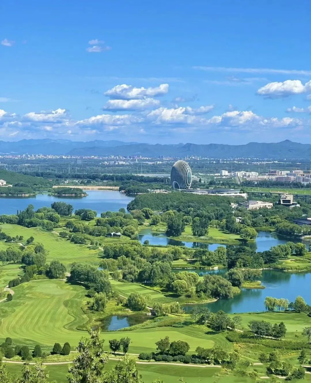 沿步道登上山顶后,可近距离俯瞰雁栖湖核心岛全貌。夏天,行走在西山步道上,满眼葱茏翠绿,湖面微风吹来,令人心旷神怡,休闲健身和饱览美景两全其美、各不耽误。