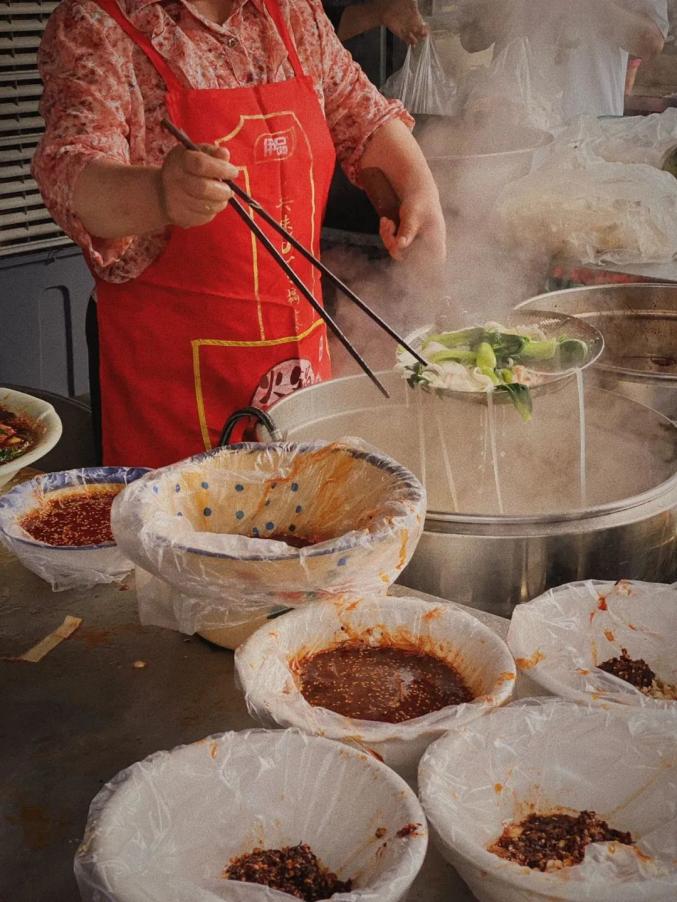 炸得金黄的油饼馓子再配上一瓶热热的夏进纯牛奶,下肚暖胃又饱腹。米皮届的“扛把子”——汉中热米皮,俘获了不少本地人的胃,来吃的人络绎不绝。还有烤鸭、甄糕、烧饼、油糕、麻球……各类美食应有尽有。