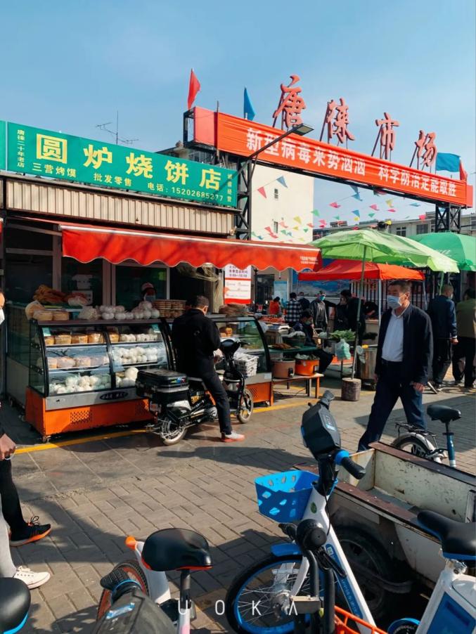 这里货品种类丰富,蔬菜、水果、新鲜的肉品应有尽有,这里的馍馍、饼子齐全又好吃,除了吃的还有一些家具、日用百货等。作为平价宝藏之地,它是当地人闲适慢生活的另一体现。
