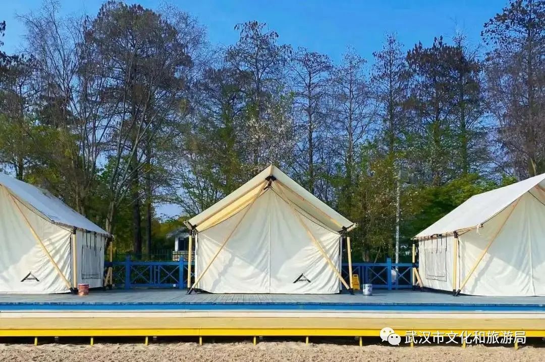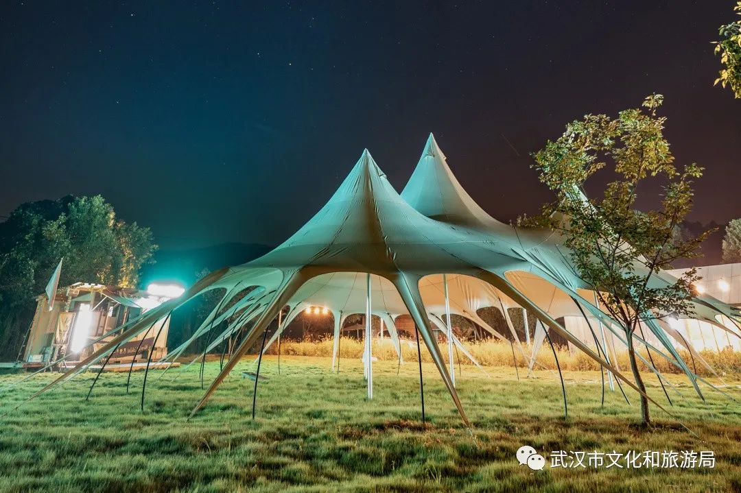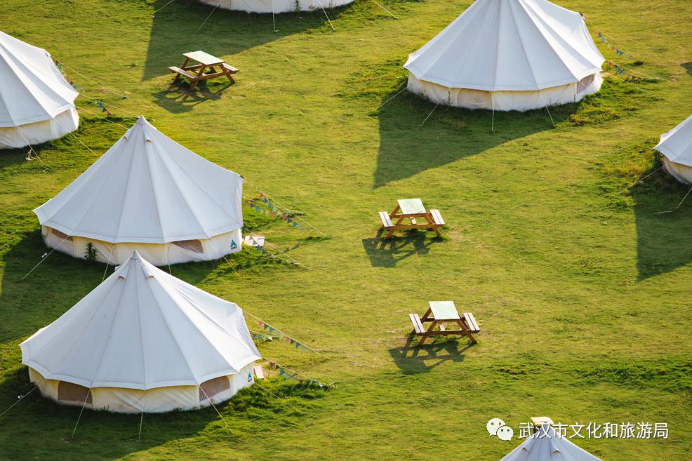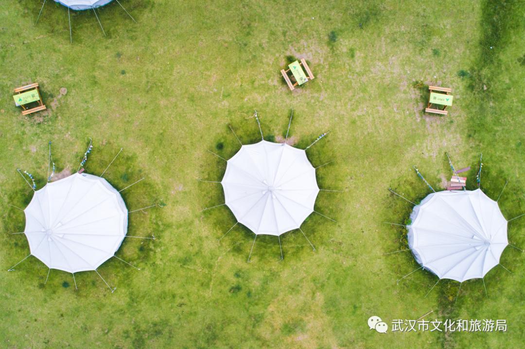 目前,武汉开放露营的景区数目不少,其中一些还专门开辟了露营营地,提供帐篷等器具租借、DIY烧烤餐食等配套服务,贴心又方便。