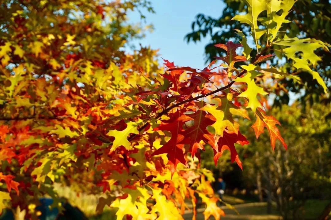 深秋初冬,上海色彩斑斓:银杏染成了金黄色,枫树绽放艳丽红色……这些色叶树为单调的冬天增添了一抹绚丽的颜色。