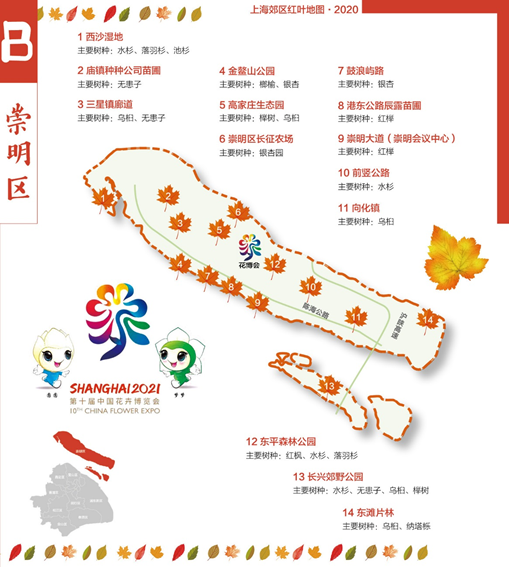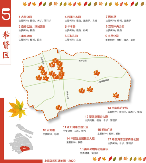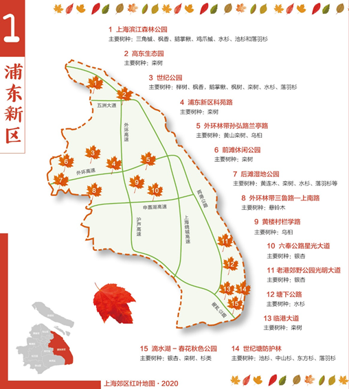 12月16日,澎湃新闻记者从上海市绿化和市容管理局获悉,为加快上海林业“四化”(绿化、彩化、珍贵化、效益化)建设,满足市民森林游憩需求,林业部门制作了2020版上海郊区红叶地图。