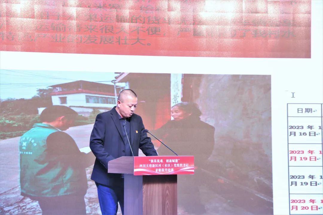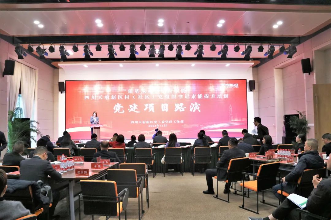 为深入学习习近平新时代中国特色社会主义思想,增强基层党组织政治功能和组织功能,着力孵化培养一批“讲政治、顾大局,有情怀、善治理,勇担当、求卓越”的高素质专业化村(社区)党组织书记队伍,11月30日,四川天府新区村(社区)党组织书记进行党建项目集中路演。