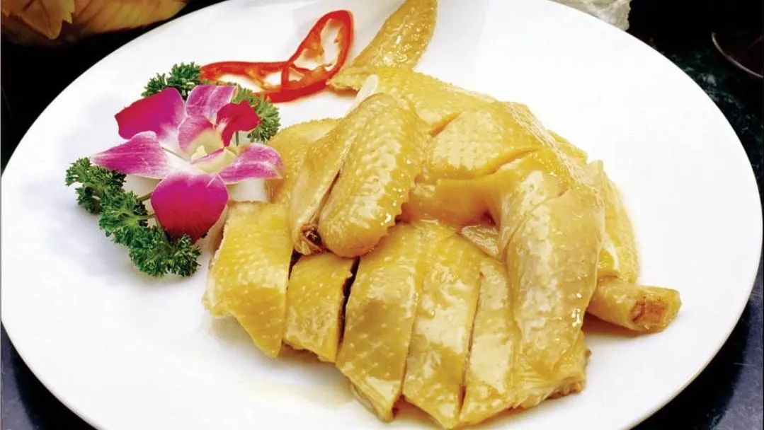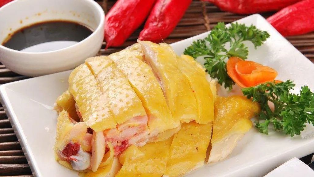 用鸡汤煮肉皮取冻拌入,以取其鲜,
