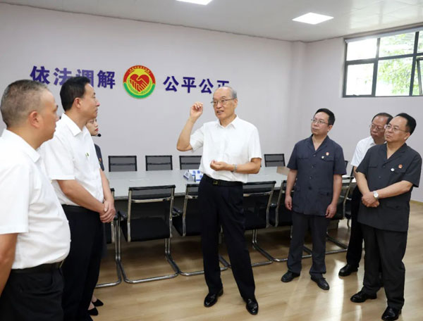 调研组一行还看望慰问了一线法院干警,通过面对面交谈、视频连线、实地走访等形式,与诉服窗口工作人员、人民法庭干警、特邀调解员、当事人等沟通交流。