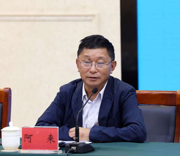 四川省委常委、政法委书记、社会工作部部长靳磊,全国人大代表王晓梅、王麒、汪其德,全国政协委员阿来在座谈会上发言。摄影:孙若丰