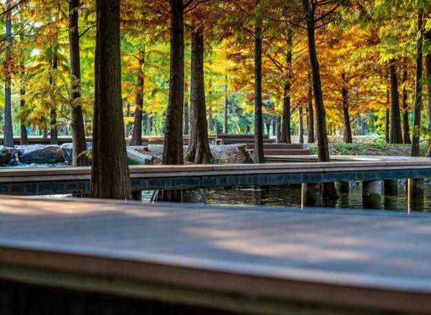 乘坐地铁1号线“森林公园站”即可到达新龙生态林。这座巨大的城市森林占地10028亩,东西长9.7公里,南北宽最大为928米,素有“常州万亩森林”的称号,也常州唯一一处原始森林自然生态景区,待秋风起时,它将渐渐成为揽下整套秋色的“城市后花园”。