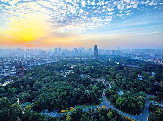 碧波荡漾,一望无际。沿着滆湖东岸漫步,静静的湖水、嵌入湖中的走廊,与天际连为一体。在公园内徜徉,清澈的水面被鸟儿掠起时带出的涟漪一直延伸到远处,画面如诗一般美丽。如果嫌步行太累,也可以租一辆公共自行车,骑着欣赏沿途风景。